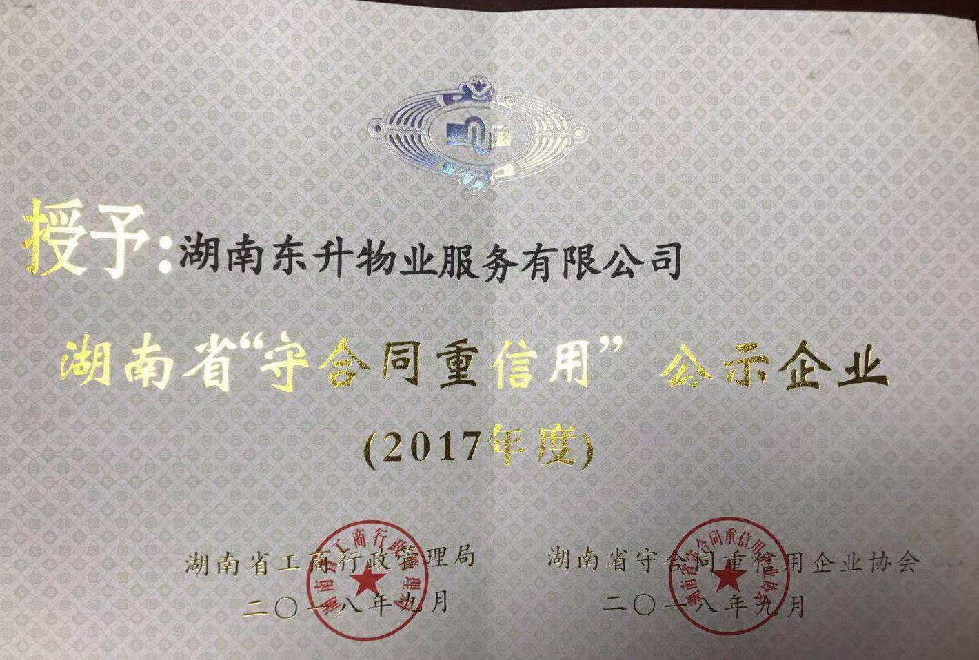 • 2018年湖南省守合同重信用企業(yè)